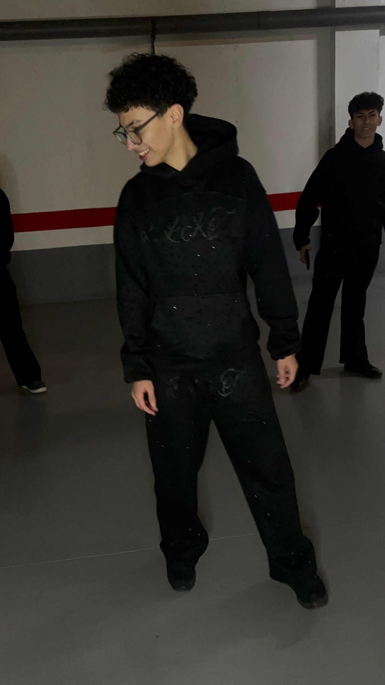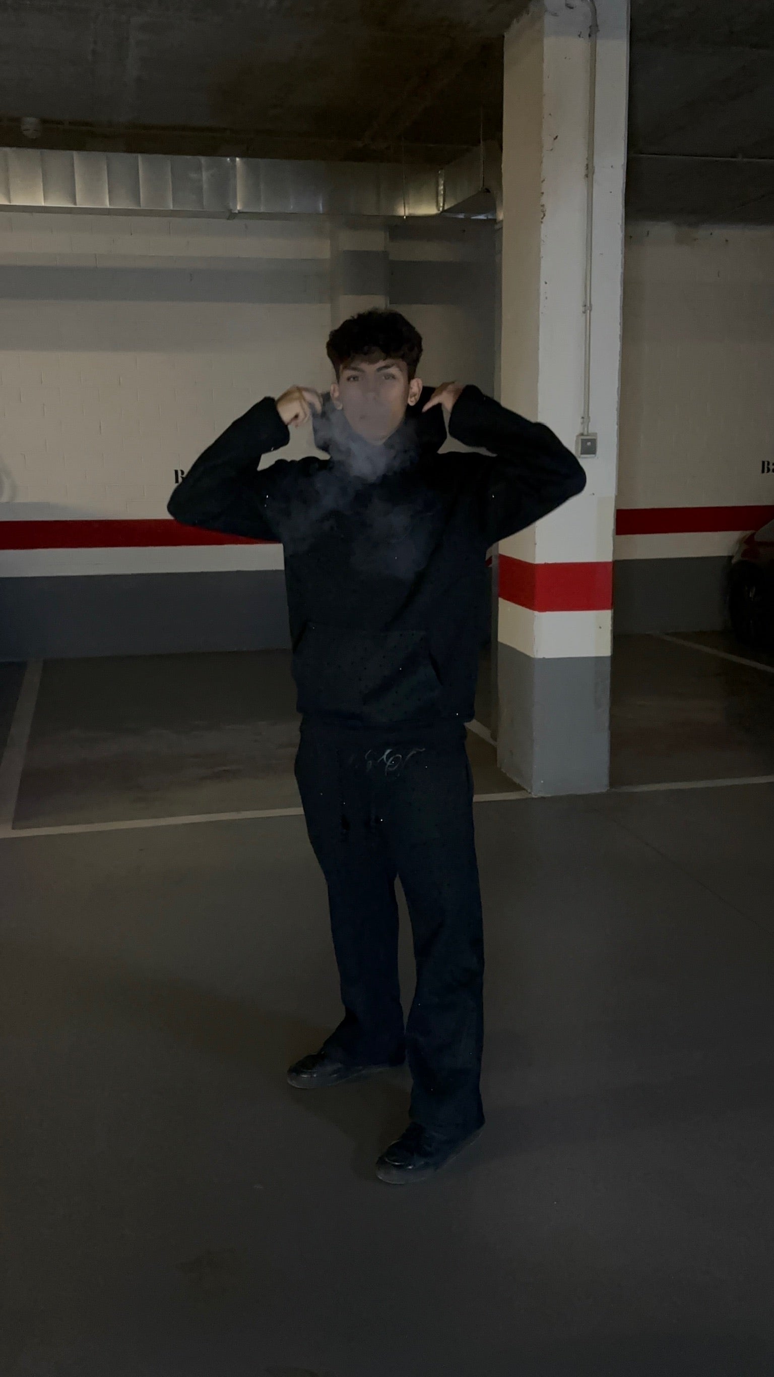 Pantalón negro confeccionado con tejido de alto gramaje, pensado para ofrecer resistencia, comodidad y una caída impecable. Su diseño incorpora pedrería negra aplicada con precisión, aportando un brillo discreto que eleva la prenda sin perder sobriedad ni elegancia.